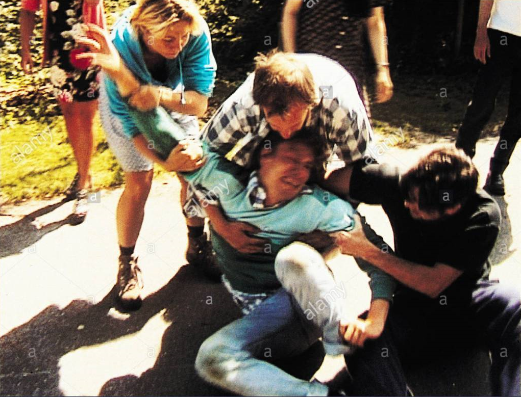 In many ways, The Idiots is representative of the Dogme 95 movement as a whole. As Walters describes “[…]precisely because of its many imperfections and discomforting subject matter, The Idiots may be the most fully developed and compelling expression of Dogme ideology. The meaningfully artless form and content of The Idiots are intertwined in particularly unique and revolutionary ways, enabling the film to critique contemporary film and contemporary culture.” (Walters, Tim. Reconsidering The Idiots: Dogme 95, Lars von Trier and the Cinema of Subversion?). The term “meaningfully artless” is particularly interesting. In many ways, the use of its low budget and almost amateurish style in some ways enhance certain aspects of the film. A scene that exemplifies this is the scene in which one of the group is forcibly taken away from the group, and the protagonists desperately attempt to prevent this, only to fail. Due to the lower grade of film, the handheld style (even seeing the camera operator’s shadow) and the distinct lack of music, it creates a pseudo-documentary style and equally draws the viewer in as much as it alienates them. It creates the illusion that this is painfully and uncomfortably real, something that the ‘decadent’ mainstream would potentially fail to achieve.